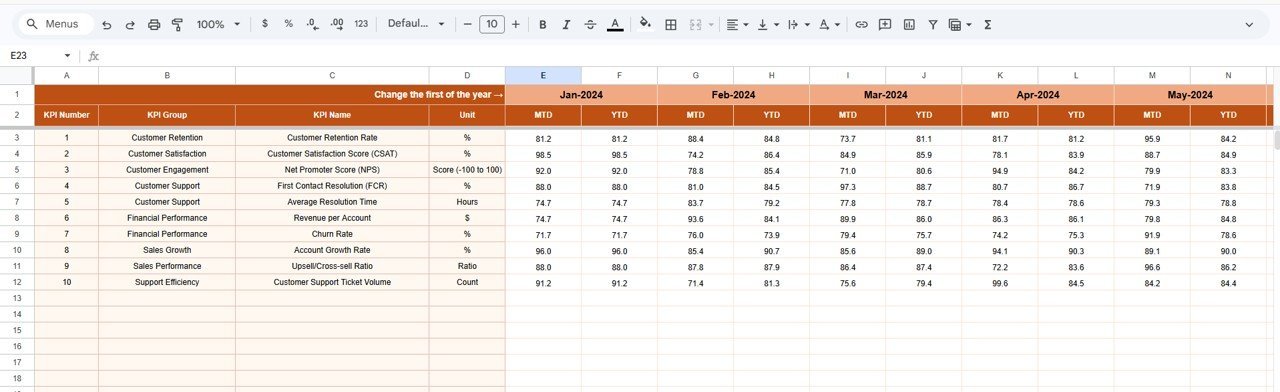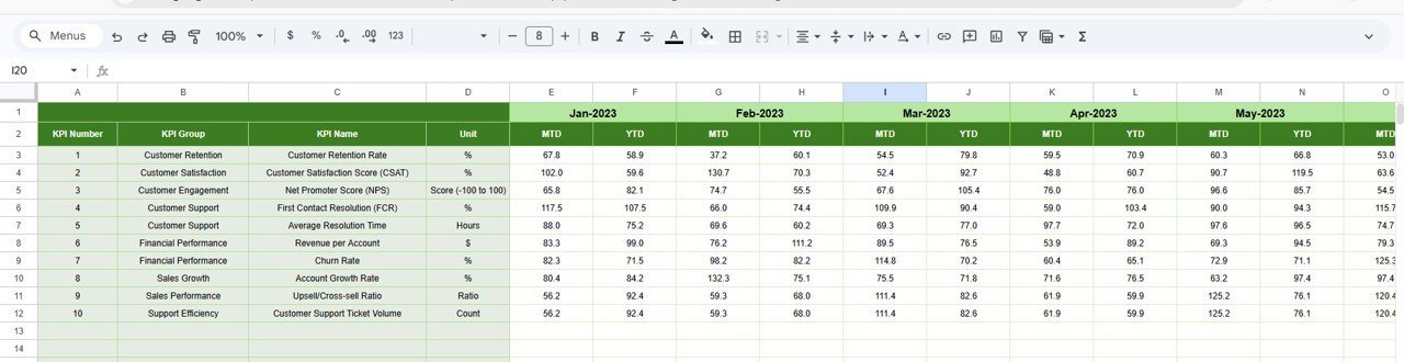 🎯 Target Number Input Sheet: Set your MTD and YTD targets per KPI to measure progress effectively.