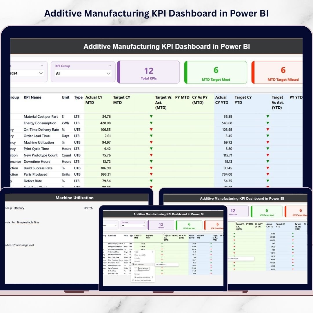 📦 What’s Inside the Additive Manufacturing KPI Dashboard