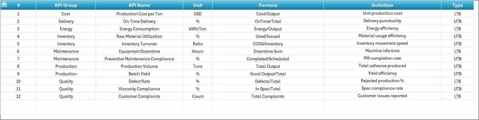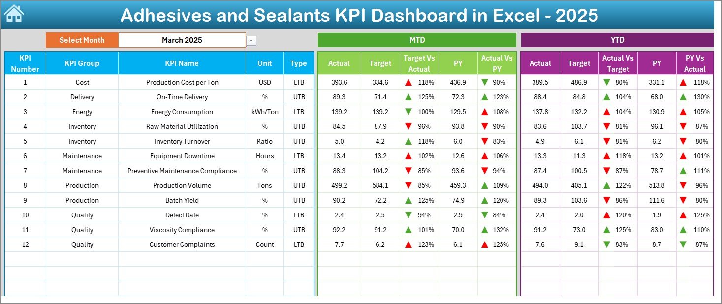 ⚙️ How to Use the Adhesives and Sealants KPI Dashboard in Excel