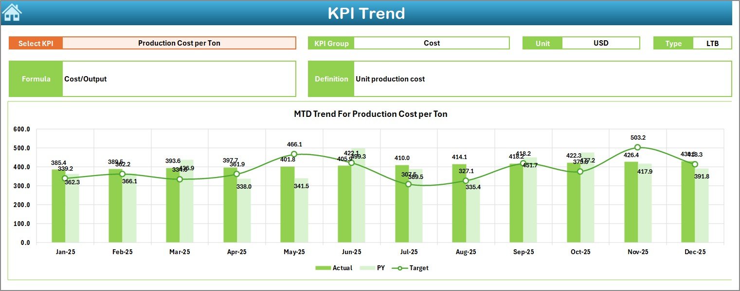 With automated calculations, dynamic visuals, and structured KPI tracking, managers can instantly monitor performance trends, compare targets, and identify improvement opportunities — all without complex software or technical expertise.