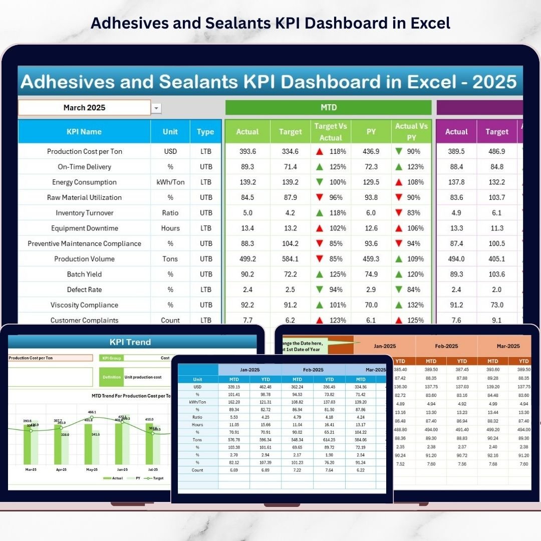 📦 What’s Inside the Adhesives and Sealants KPI Dashboard in Excel