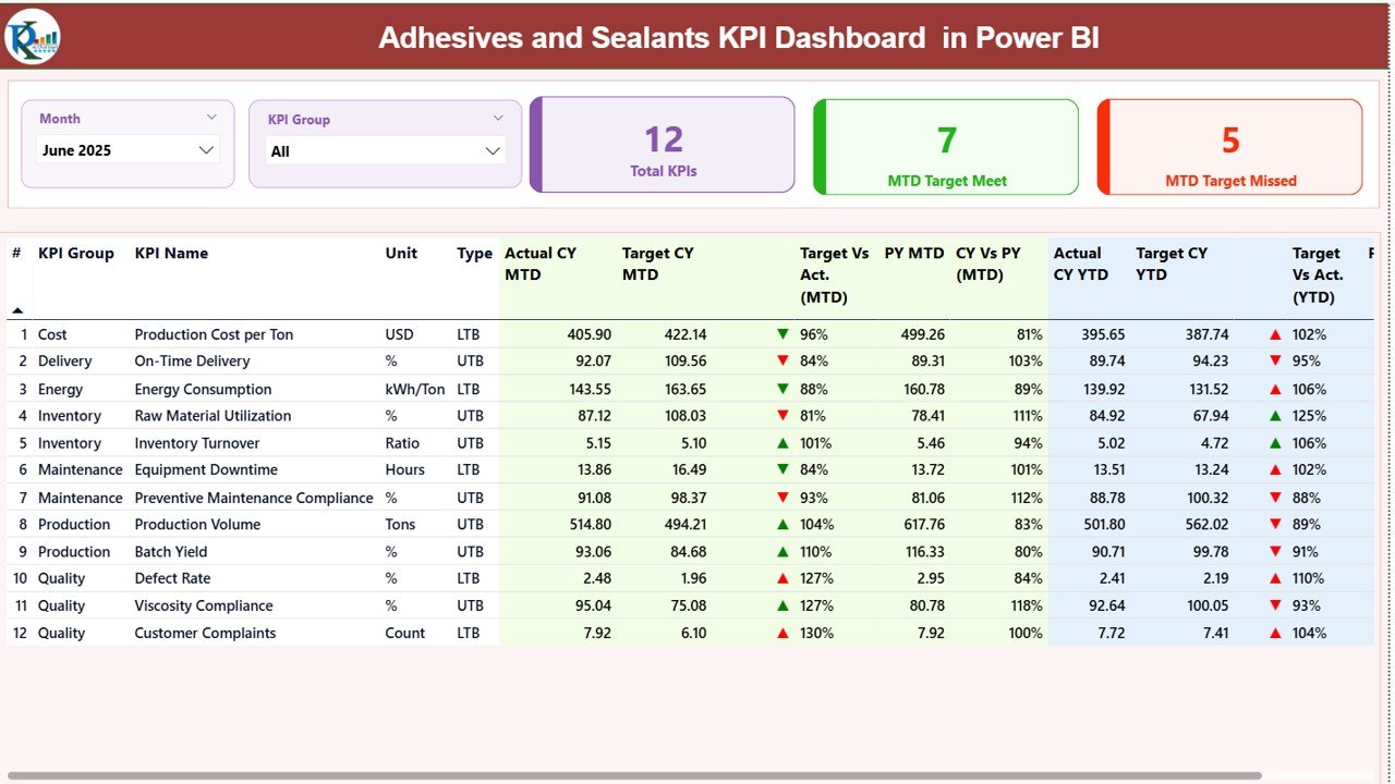 ⚙️ How to Use the Adhesives and Sealants KPI Dashboard in Power BI
