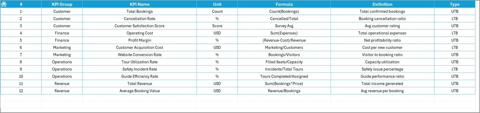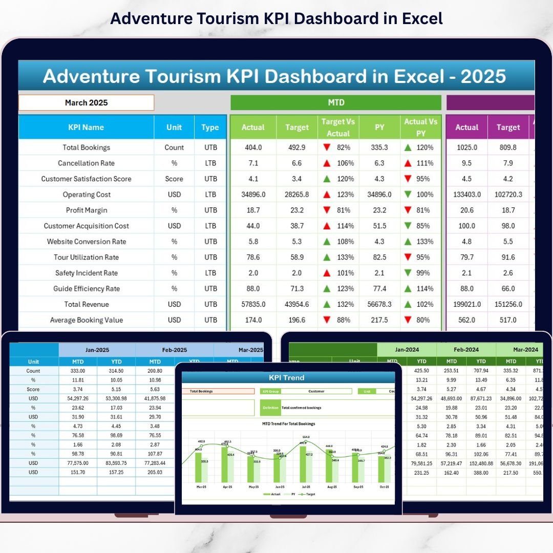 📦 What’s Inside the Adventure Tourism KPI Dashboard in Excel