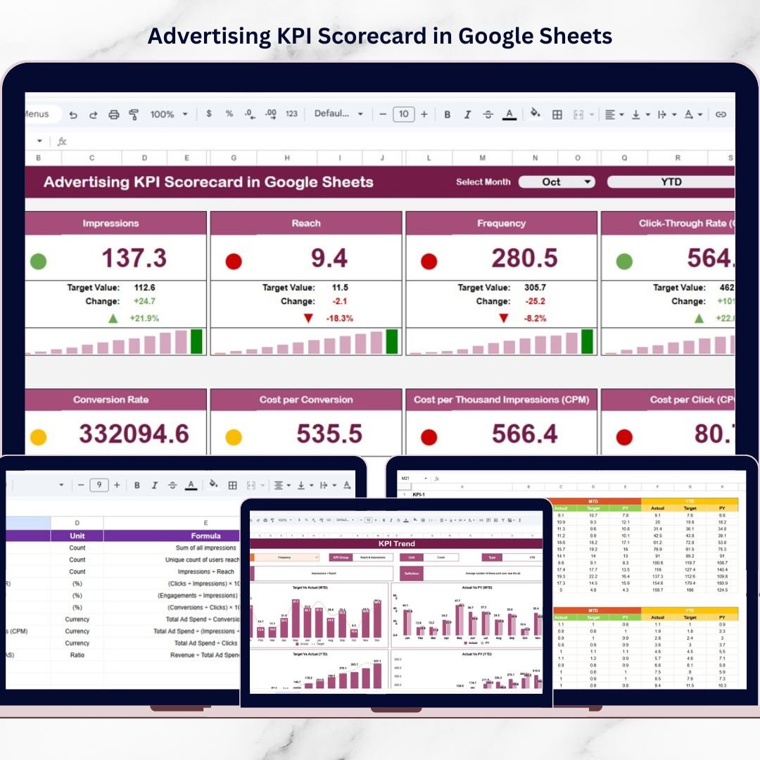 📊 Key Feature of Advertising KPI Scorecard in Google Sheets