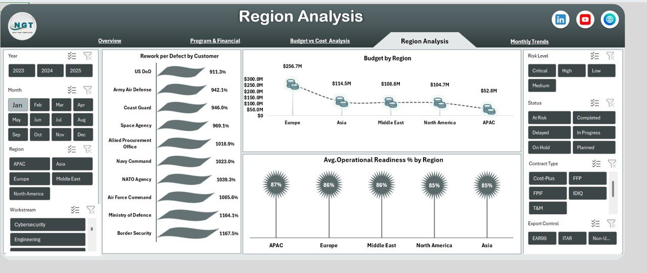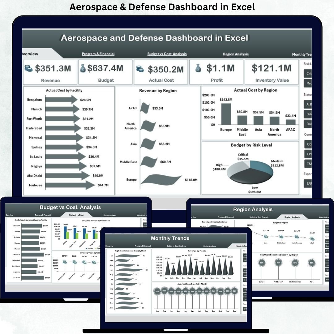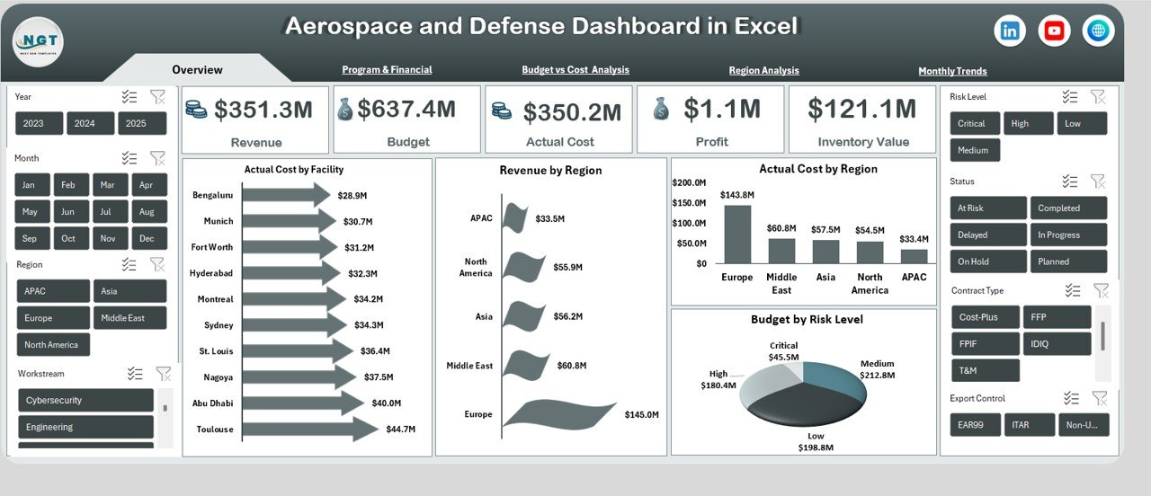 🔑 Key Features of the Aerospace and Defence Dashboard in Excel