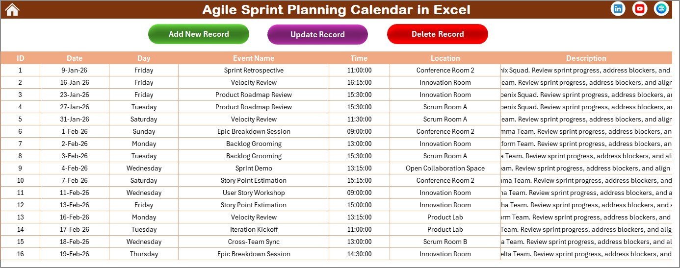 Key Features of Agile Sprint Planning Calendar in Excel