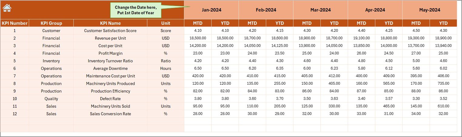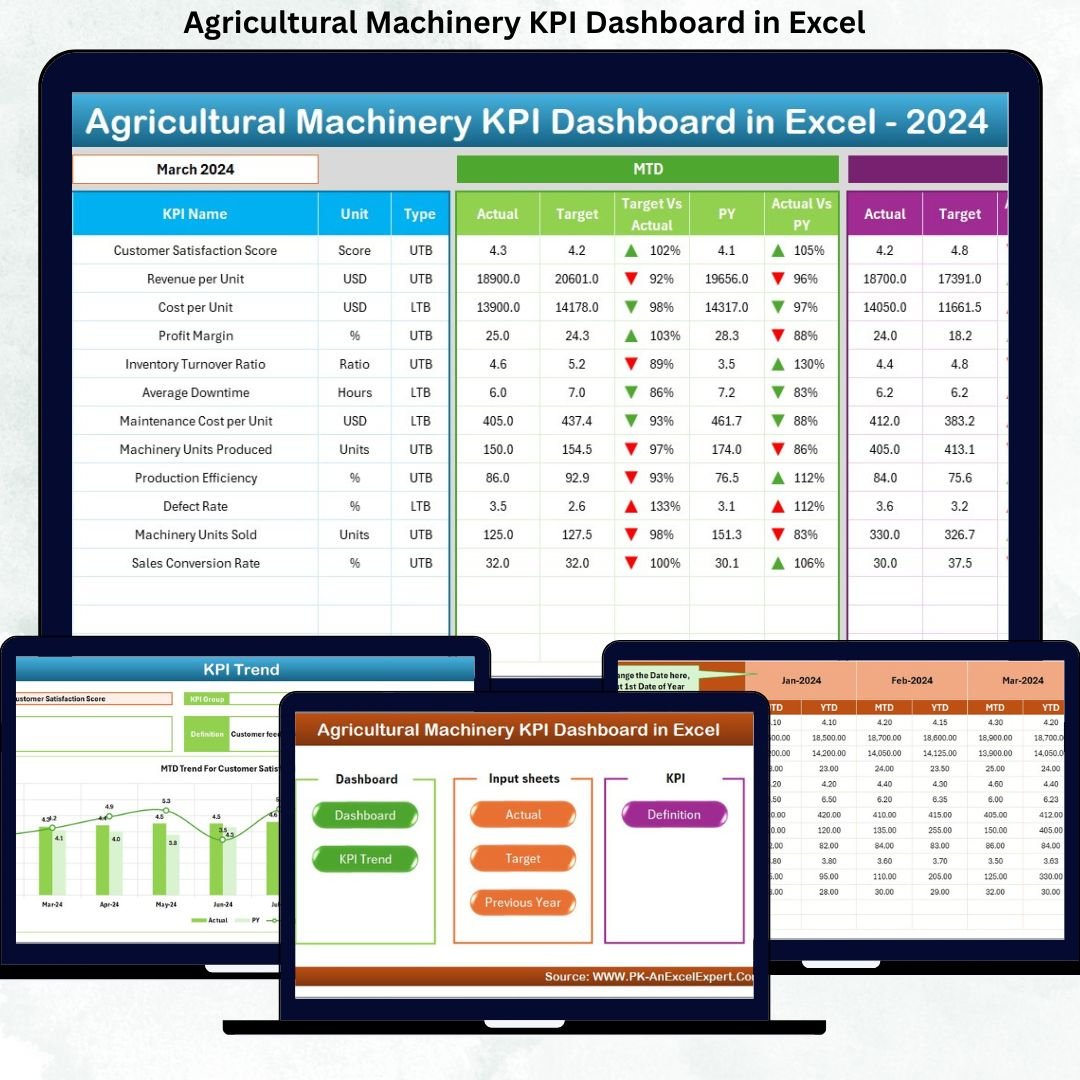 📂 What’s Inside the Agricultural Machinery KPI Dashboard in Excel