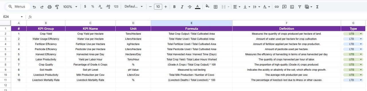 📦 What’s Inside the Agriculture KPI Scorecard in Google Sheets