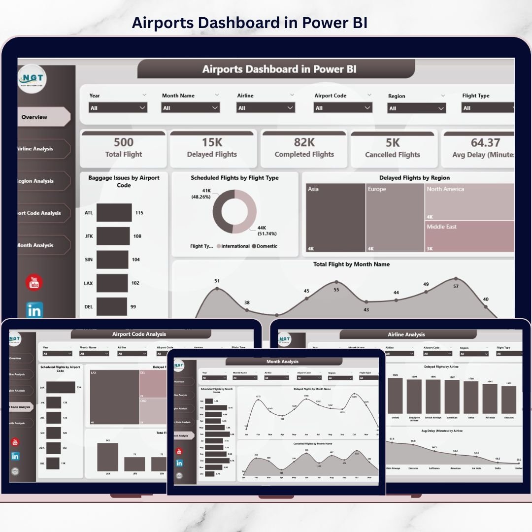 This ready-to-use Power BI dashboard converts raw aviation and airport operations data into interactive, visual, and real-time insights. Instead of waiting for end-of-day summaries or manually analyzing Excel files, airport authorities and airline teams can instantly monitor flight schedules, delays, baggage issues, airline performance, airport codes, regional trends, and monthly patterns.