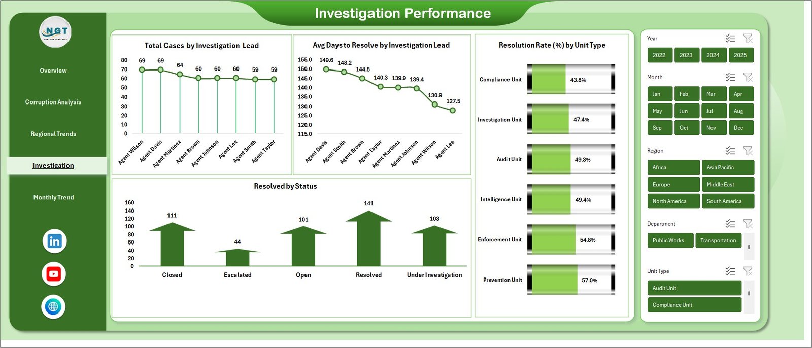 🔎 Key Features of Anti-Corruption Units Dashboard in Excel