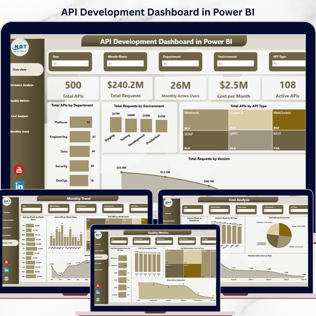 ✔️ 5 fully interactive pages (Overview, Performance, Quality, Cost, Monthly Analysis)