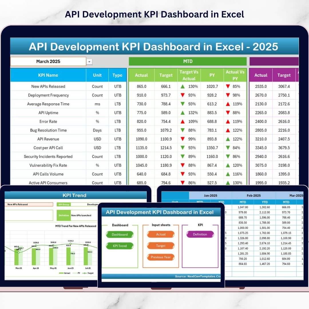 🚀 Key Feature of API Development KPI Dashboard in Excel