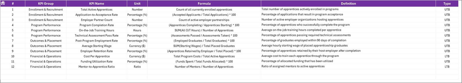 • 🎯 Any Organization Running Apprenticeship Programs: Streamline KPI tracking and improve program outcomes.