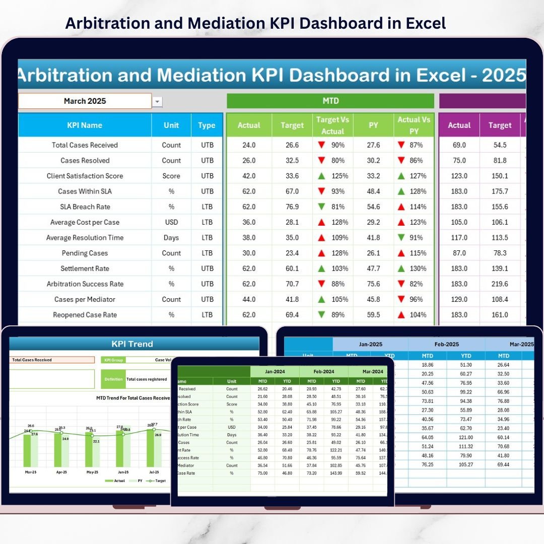 🚀 Track, analyze, and improve arbitration and mediation performance with a ready-to-use Excel KPI Dashboard designed for clarity and control.
