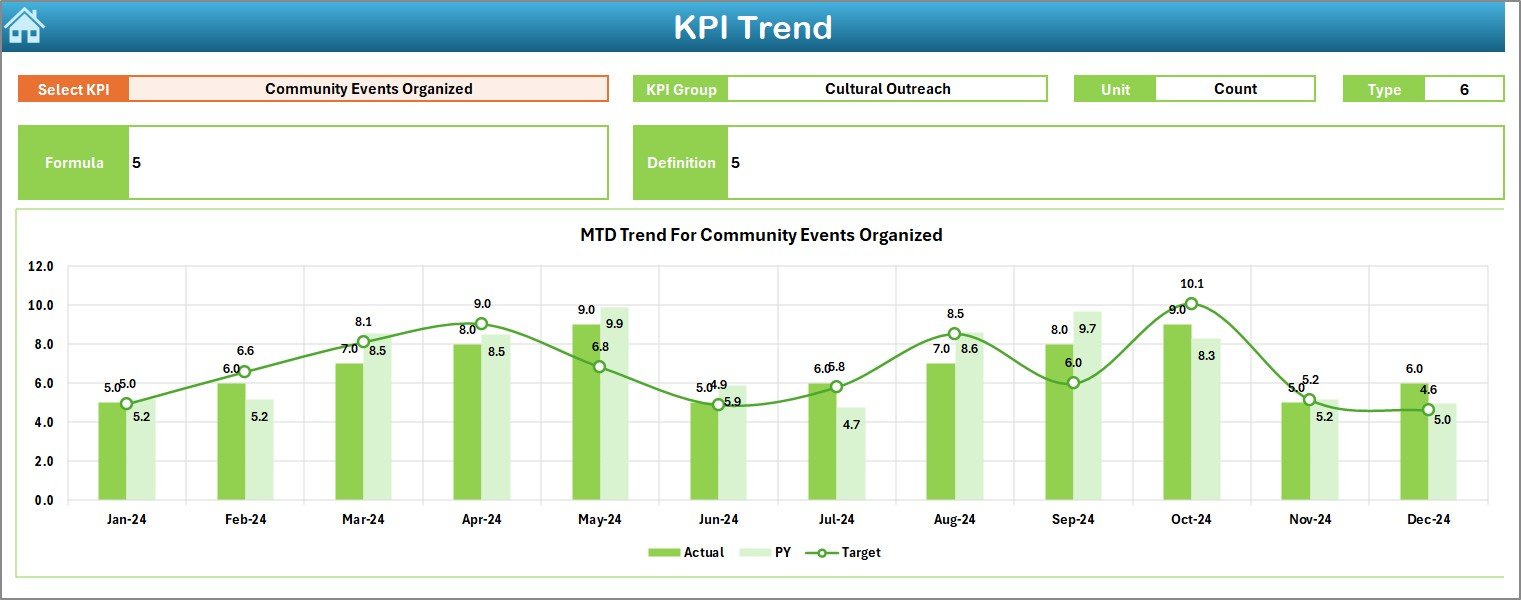 ✨ Key Features of the Arts & Culture KPI Dashboard in Excel