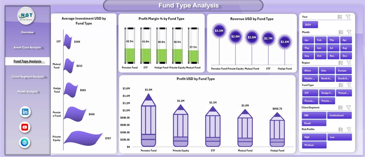 This ready-to-use Excel dashboard helps asset managers, portfolio managers, analysts, and finance teams track, analyze, and visualize key investment and financial performance metrics from a single Excel file. Instead of manually calculating figures or preparing multiple reports, users get instant insights through interactive charts, KPI cards, and slicers.
