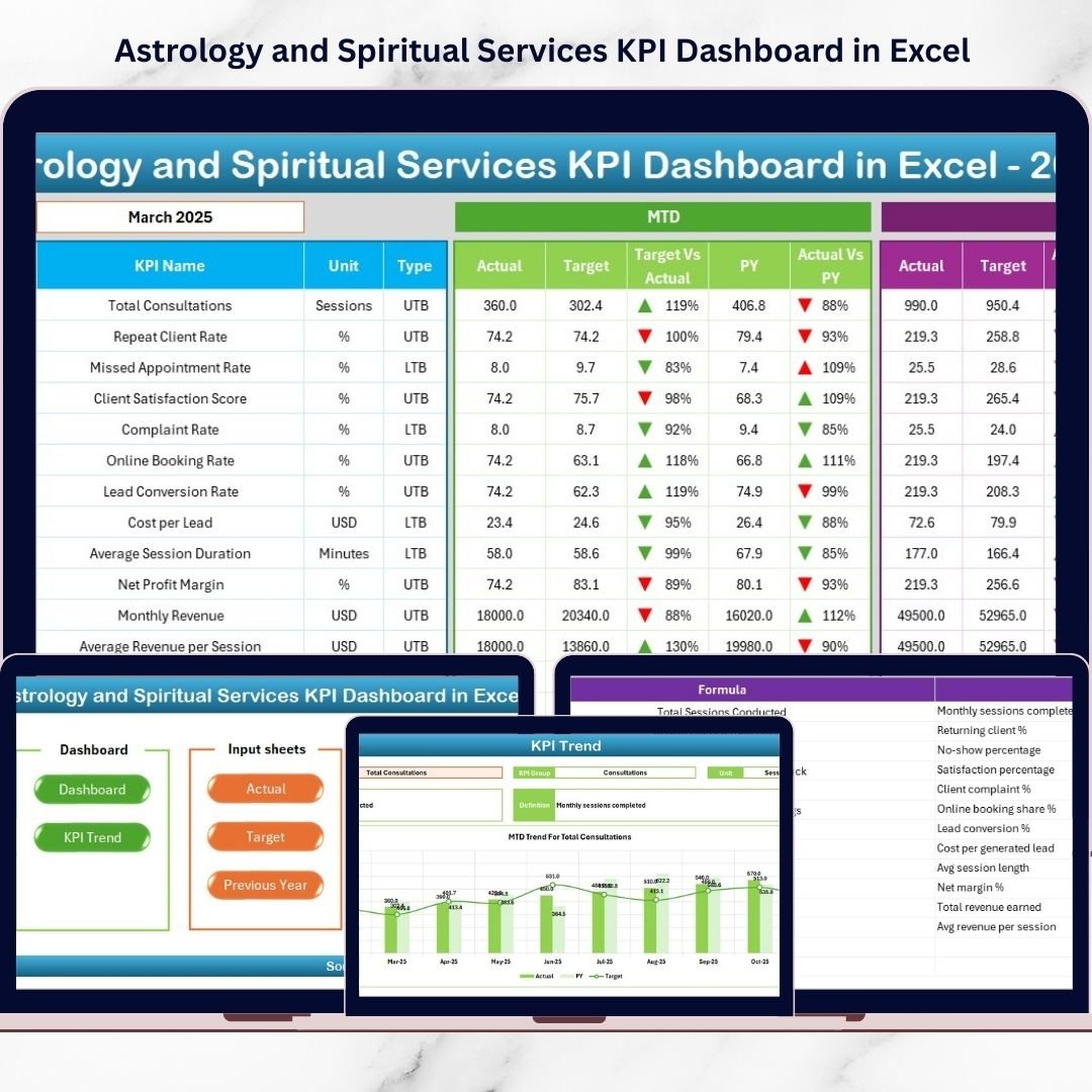 📦 What’s Inside the Astrology and Spiritual Services KPI Dashboard in Excel