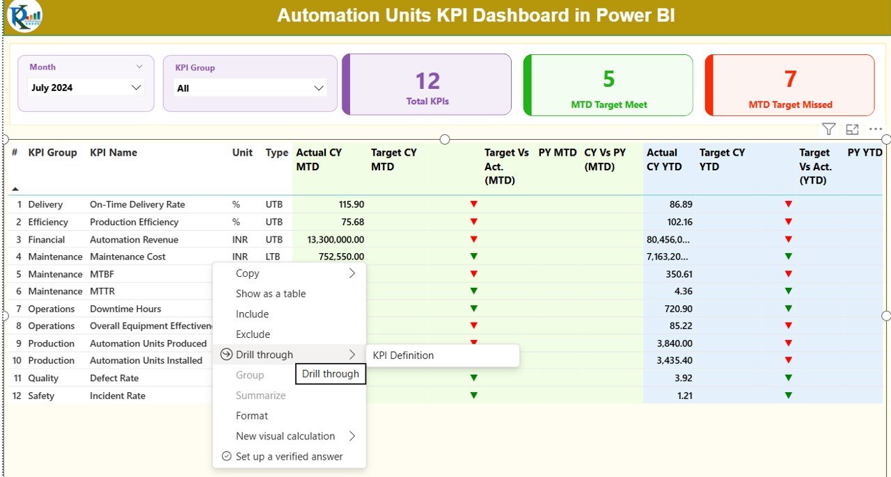 🔹 Key Features of Automation Units KPI Dashboard in Power BI