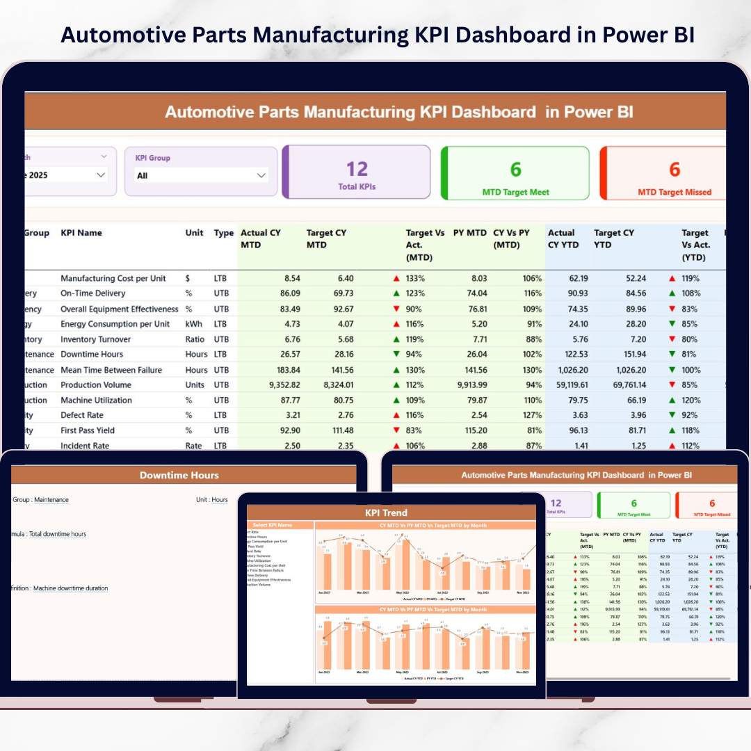 🚀 Key Feature of Automotive Parts Manufacturing KPI Dashboard in Power BI