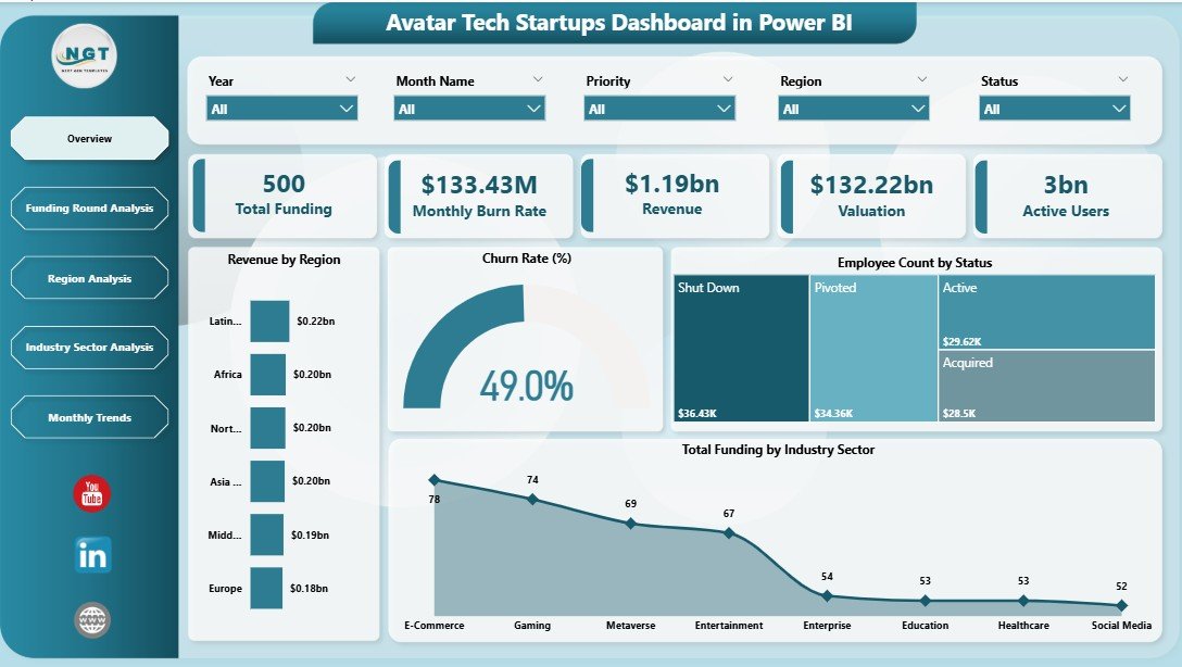 🚀 Key Feature of Avatar Tech Startups Dashboard in Power BI