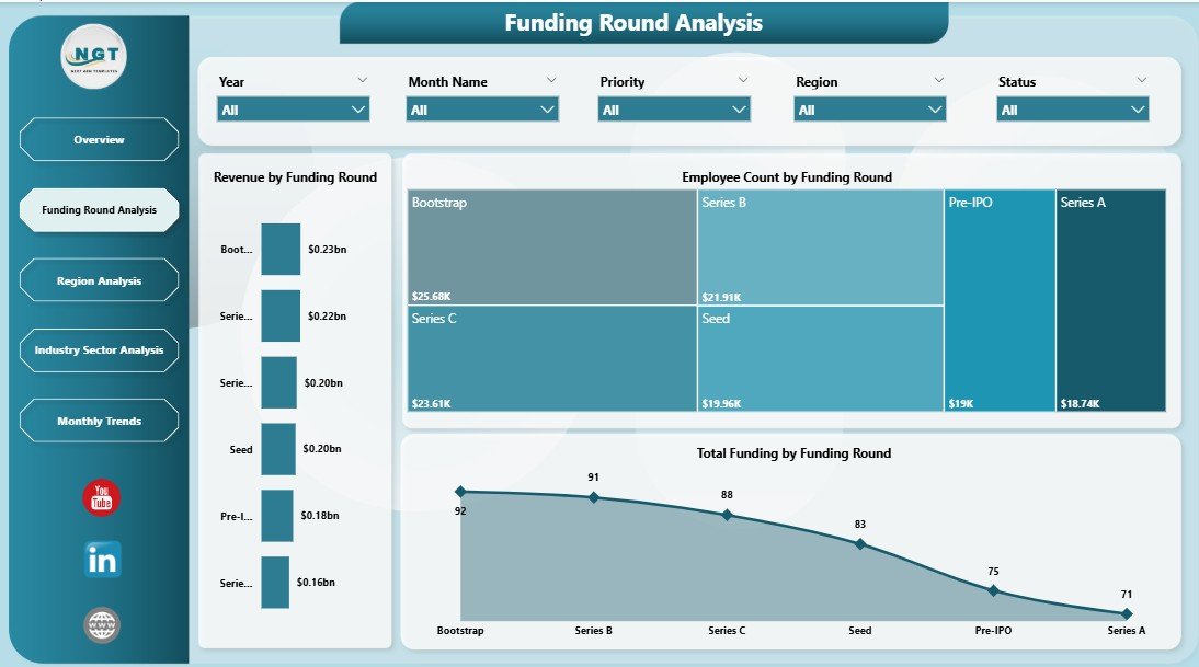 👉 Use slicers to filter by region, industry, or funding round