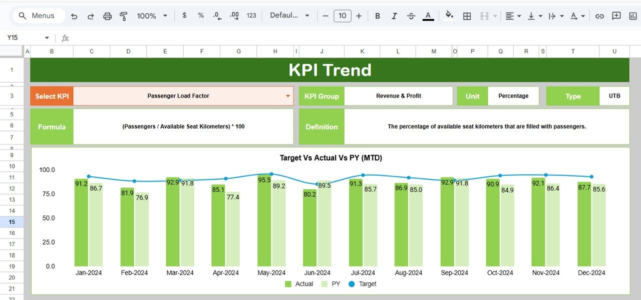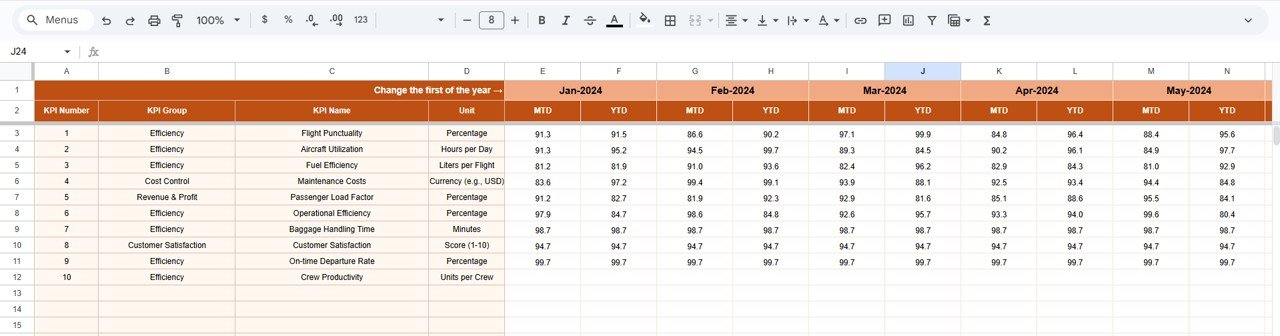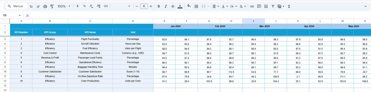 ✈️ Key Features of the Aviation Operations KPI Dashboard in Google Sheets