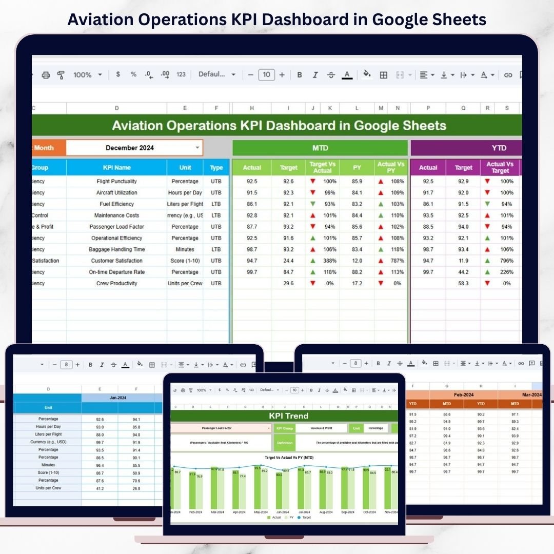 📦 What’s Inside the Aviation Operations KPI Dashboard in Google Sheets