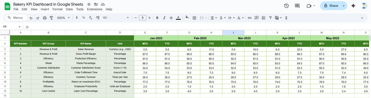 🔑 Key Features of the Bakery KPI Dashboard in Google Sheets