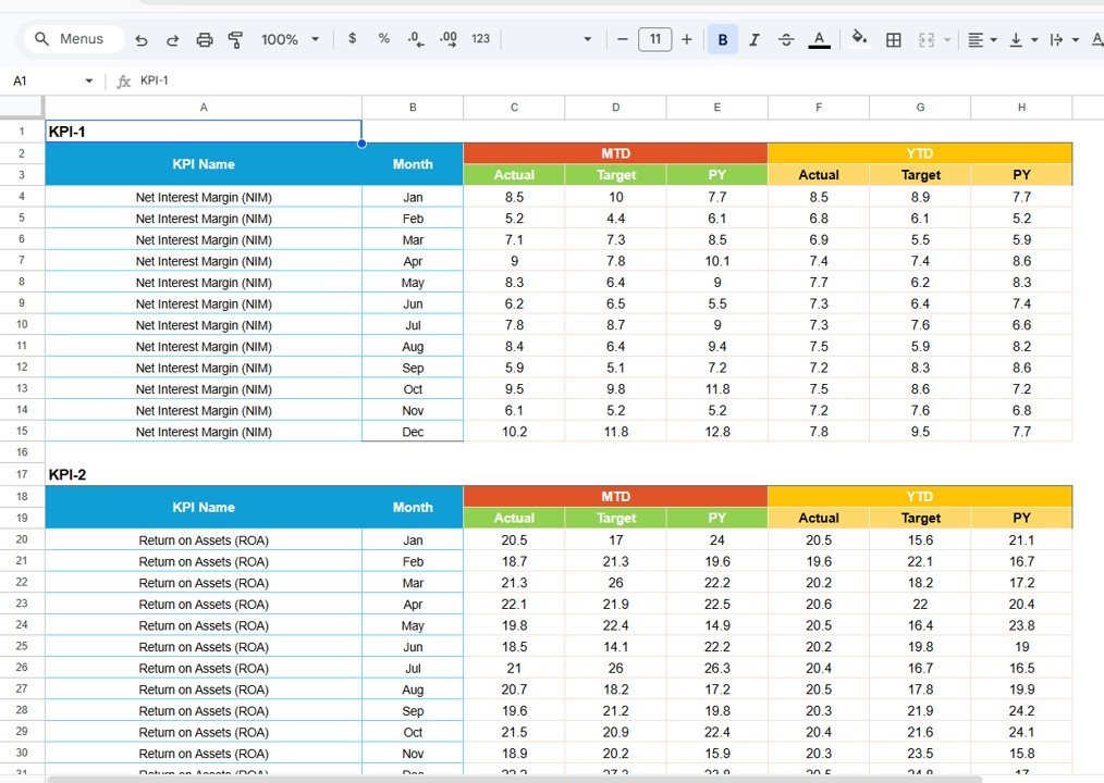 🏦 Key Features of Banking KPI Scorecard in Google Sheets