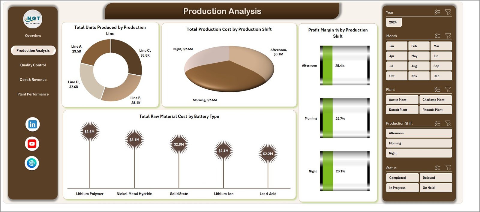 ⚡ Key Features of Battery Manufacturing Dashboard in Excel