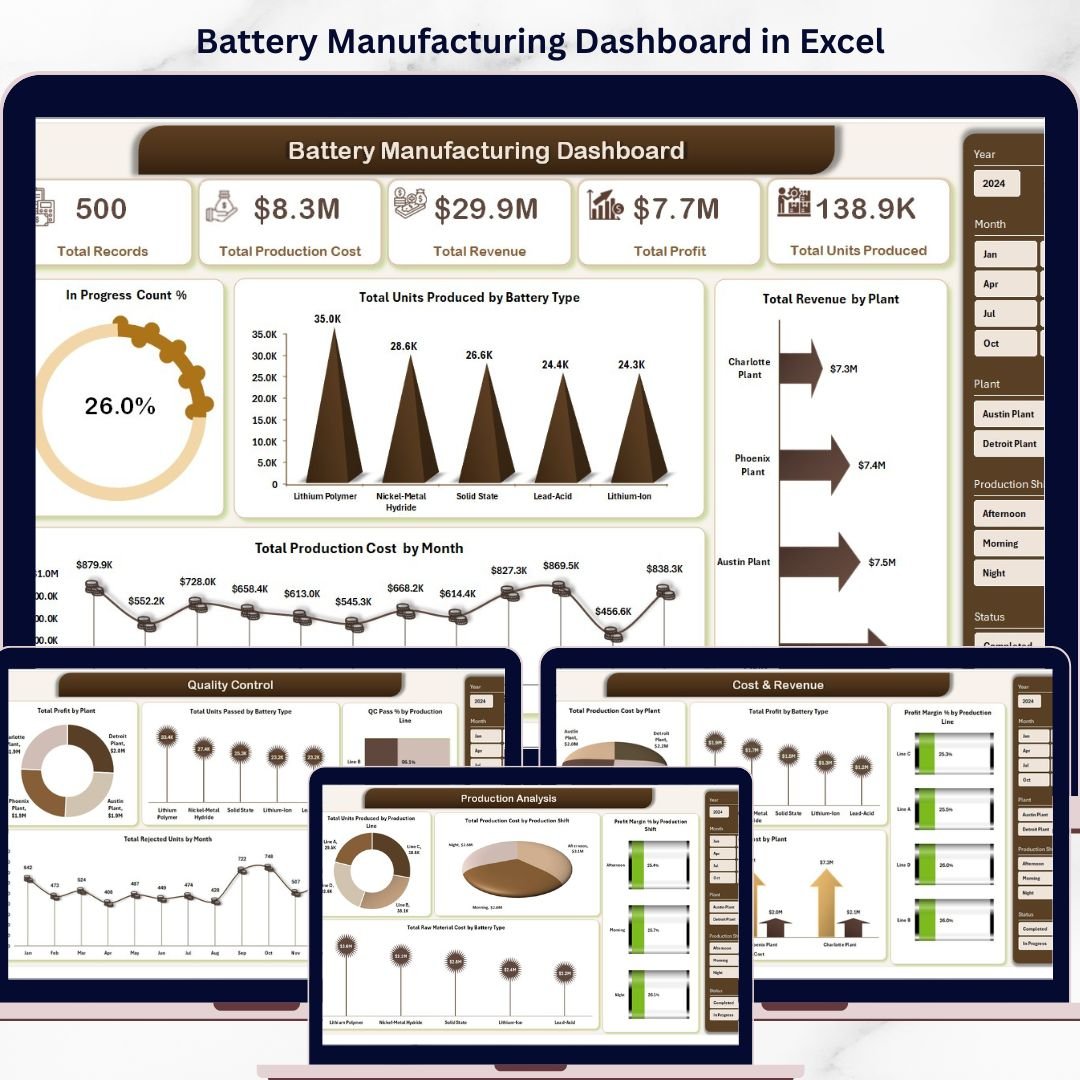 📦 What’s Inside the Battery Manufacturing Dashboard in Excel