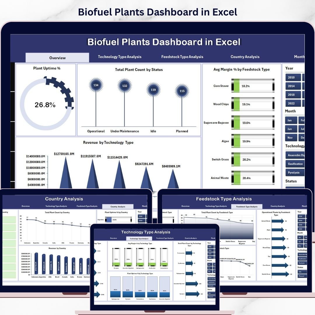 Transform your renewable energy operations with the Biofuel Plants Dashboard in Excel 🚀. In today’s fast-growing biofuel industry, managing data across plant performance, revenue, margins, feedstock, and technology can be overwhelming.