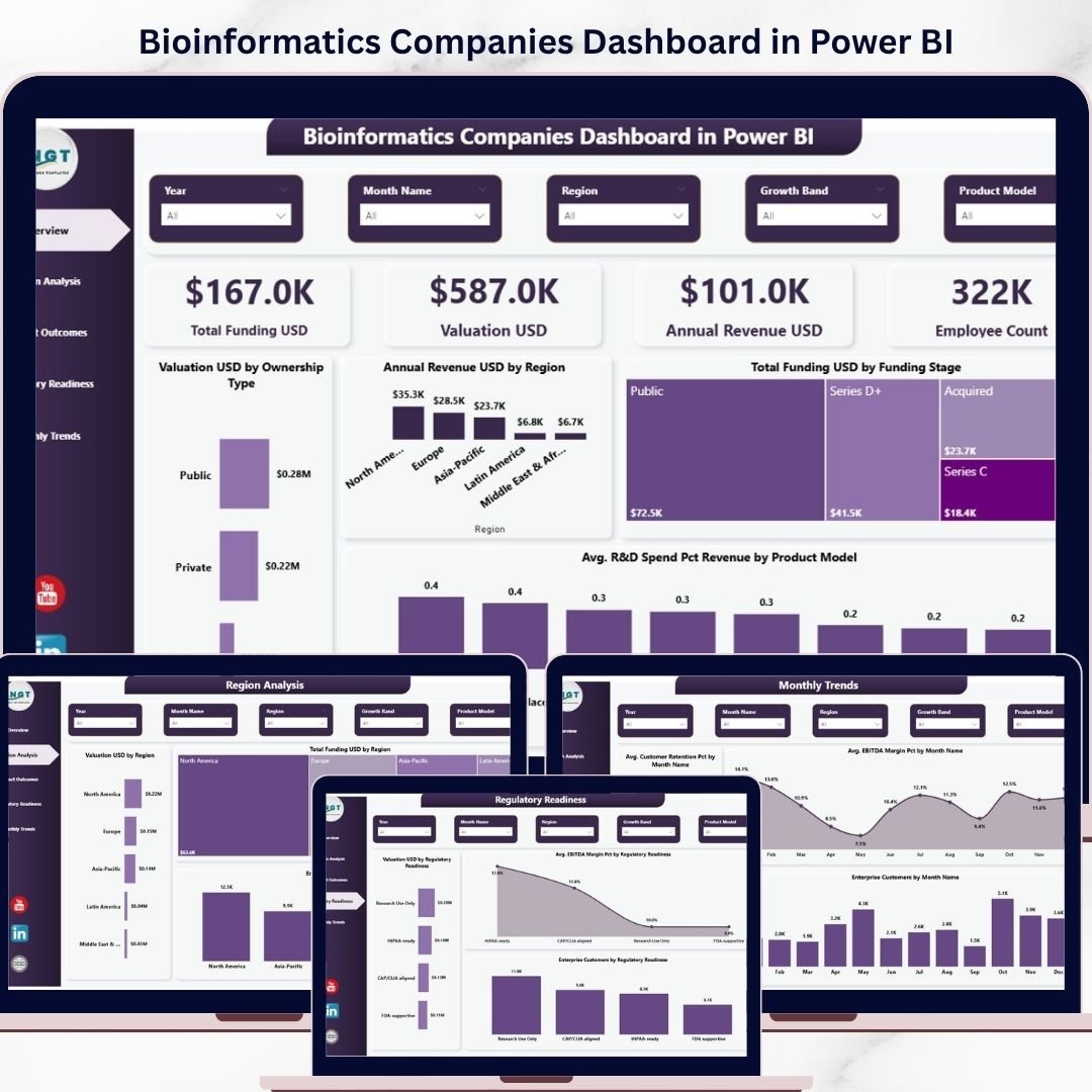 Introducing the Bioinformatics Companies Dashboard in Power BI – a smart, interactive, and ready-to-use solution designed to transform complex data into clear, actionable insights. This dashboard helps you monitor business performance, identify trends, and make faster, data-driven decisions with confidence.