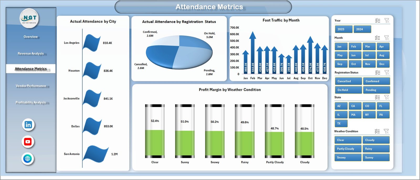 👉 Use slicers to filter by city, event, or time