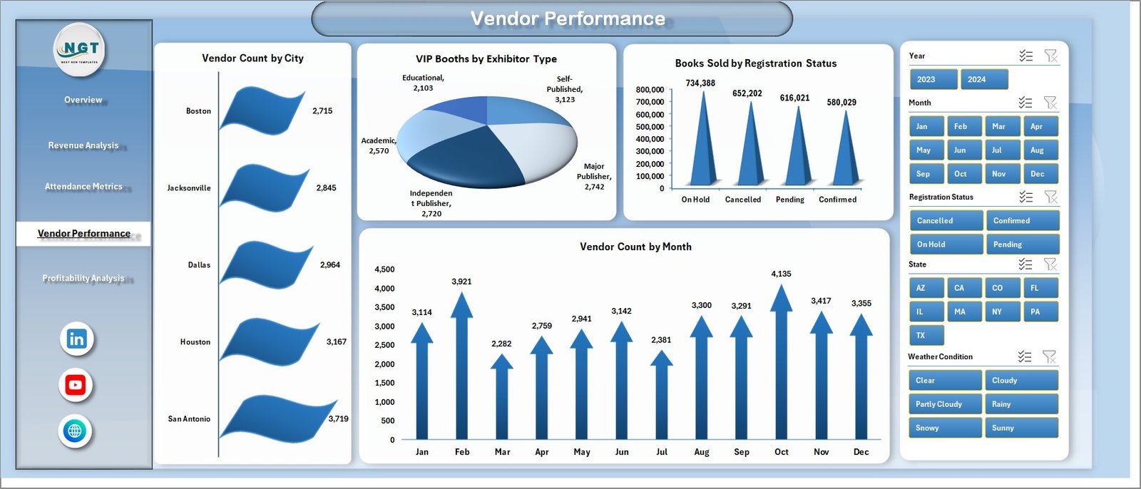 In today’s fast-moving event industry, handling visitor attendance, vendor sales, and revenue data manually can slow you down. However, this ready-to-use dashboard converts complex data into clear visuals, powerful KPIs, and actionable insights.