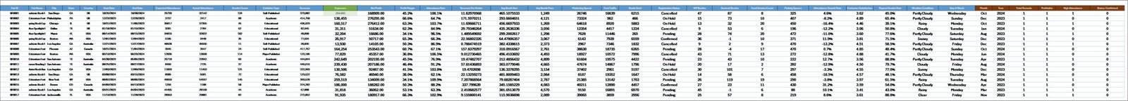 💰 Revenue Analysis – Track earnings across cities and events