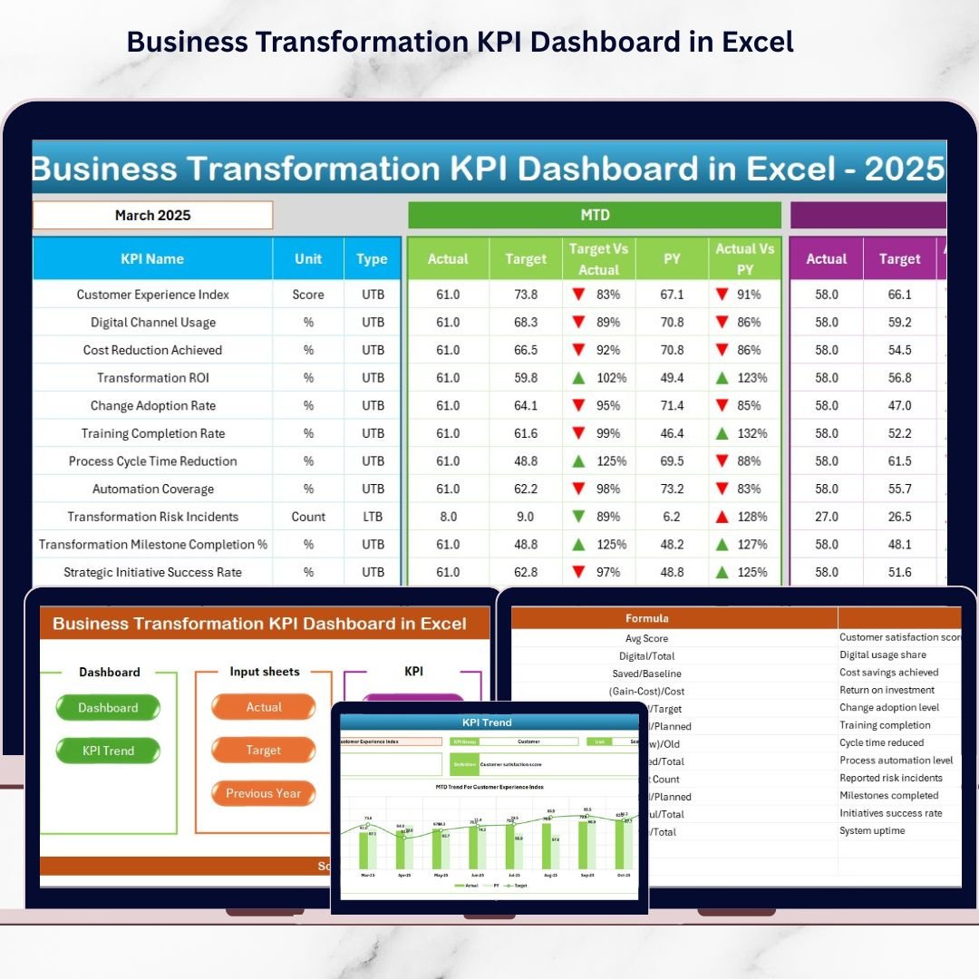 📦 What’s Inside the Business Transformation KPI Dashboard in Excel