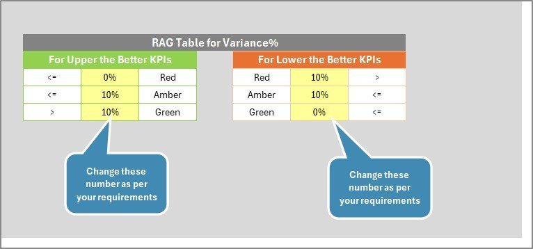 - Navigate to the Input Data sheet and enter your actual values, targets, and previous year data for each month.