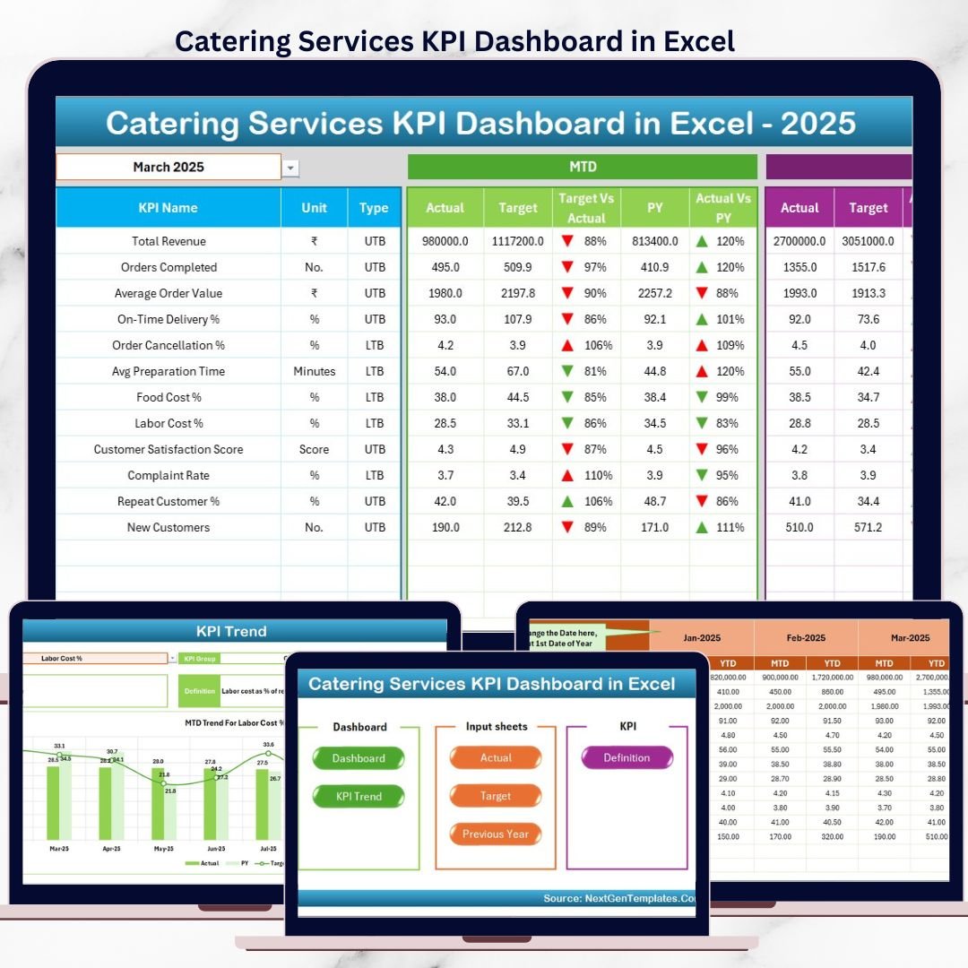 📂 What’s Inside the Catering Services KPI Dashboard in Excel