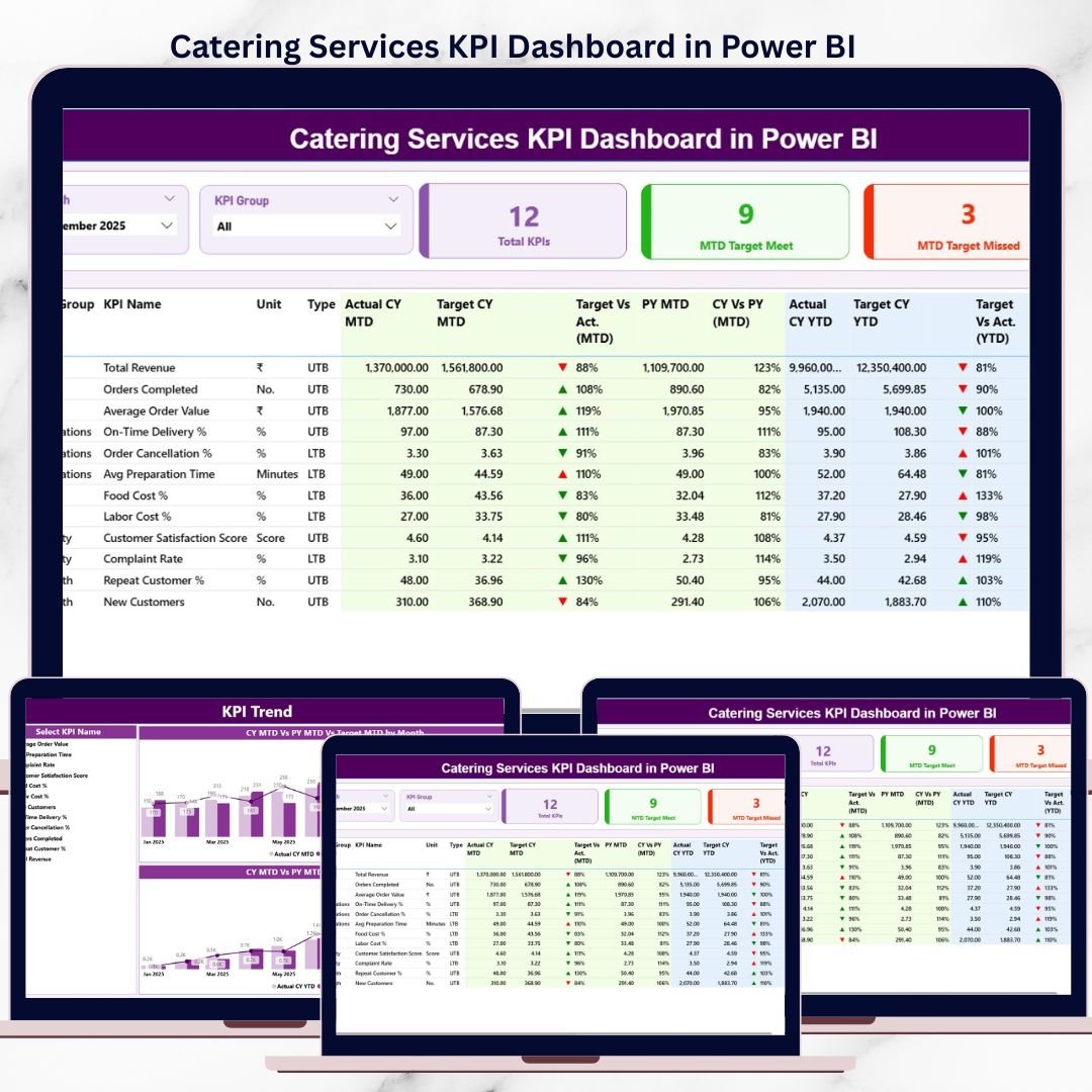 📂 What’s Inside the Catering Services KPI Dashboard in Power BI