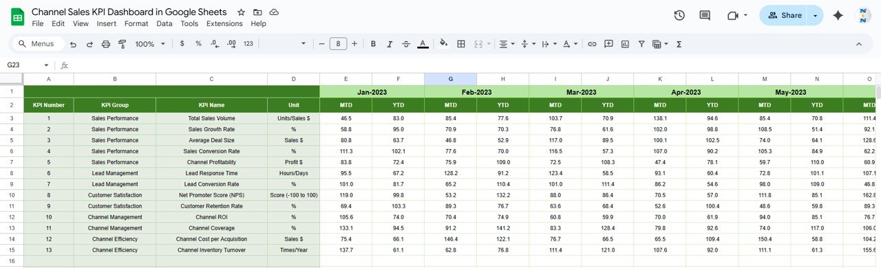 Channel Sales KPI Dashboard in Google SheetsChannel Sales KPI Dashboard in Google Sheets