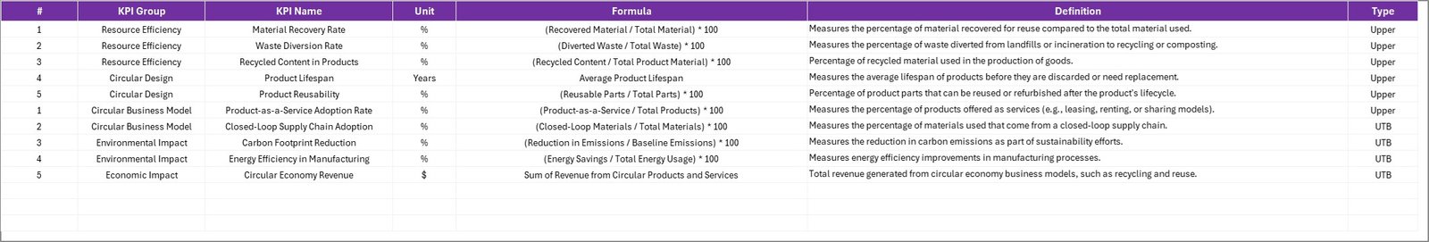 📦 What’s Inside the Circular Economy KPI Scorecard in Excel