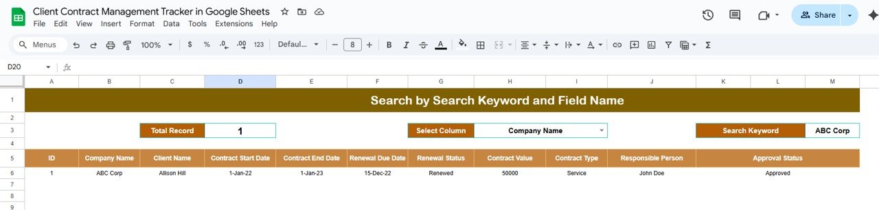 A Client Contract Management Tracker is a digital tool designed to record, track, and monitor client contracts in a centralized manner.