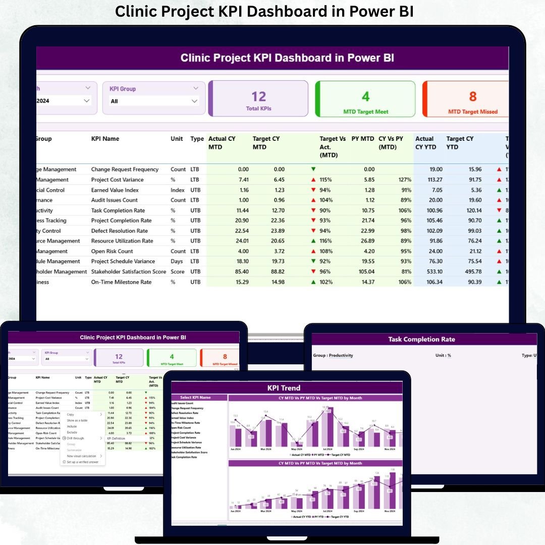 📦 What’s Inside the Clinic Project KPI Dashboard