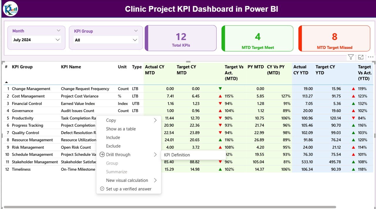 🚀 Take full control of your clinic projects with a powerful, ready-to-use KPI dashboard in Power BI.