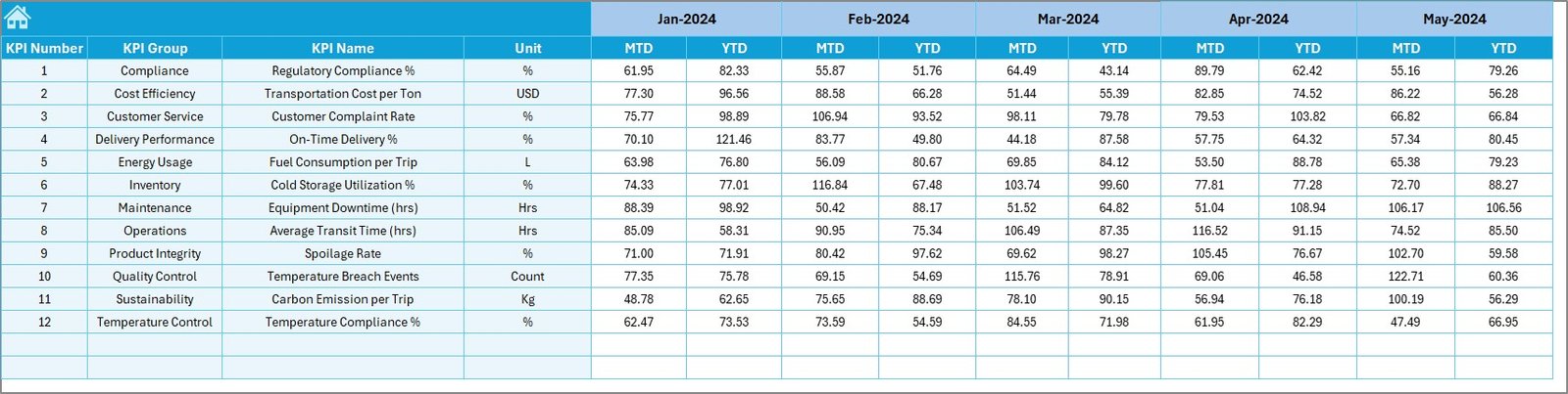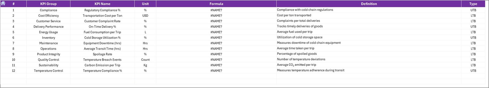 📂 What’s Inside the Cold Chain Logistics KPI Dashboard in Excel