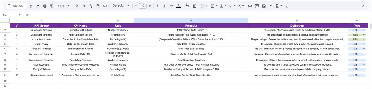 ## 🔑 Key Features of Compliance KPI Scorecard in Google Sheets