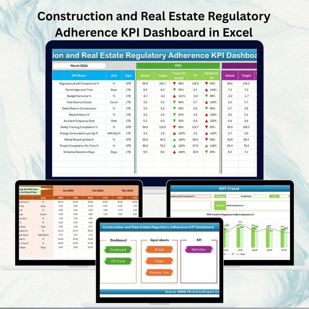 To stay ahead, companies need a structured and reliable compliance monitoring system. That’s where the Construction and Real Estate Regulatory Adherence KPI Dashboard in Excel comes in. This ready-to-use Excel dashboard consolidates all compliance KPIs into one interactive platform, giving businesses complete visibility into their adherence levels.