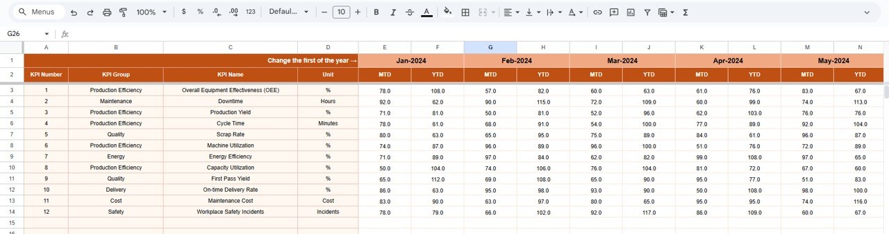 2️⃣ Enter actual performance values in the Actual Number Sheet