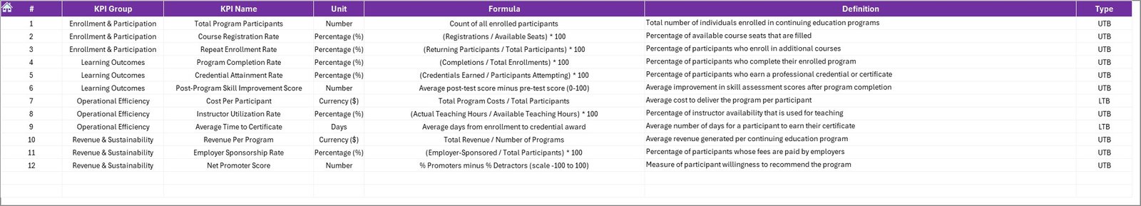 📦 What’s Inside the Continuing Education Programs KPI Dashboard